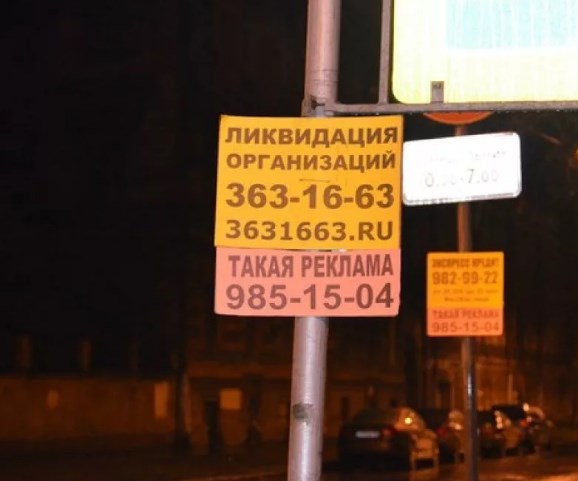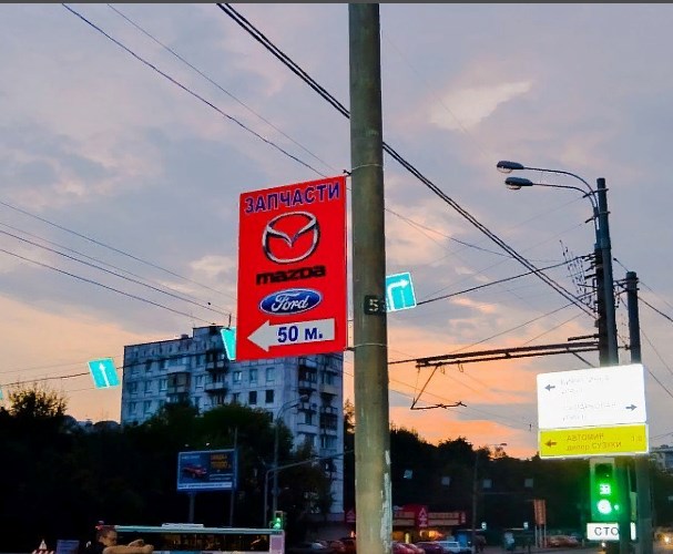 Пример рекламы на дорожных указателях. Фото 2
