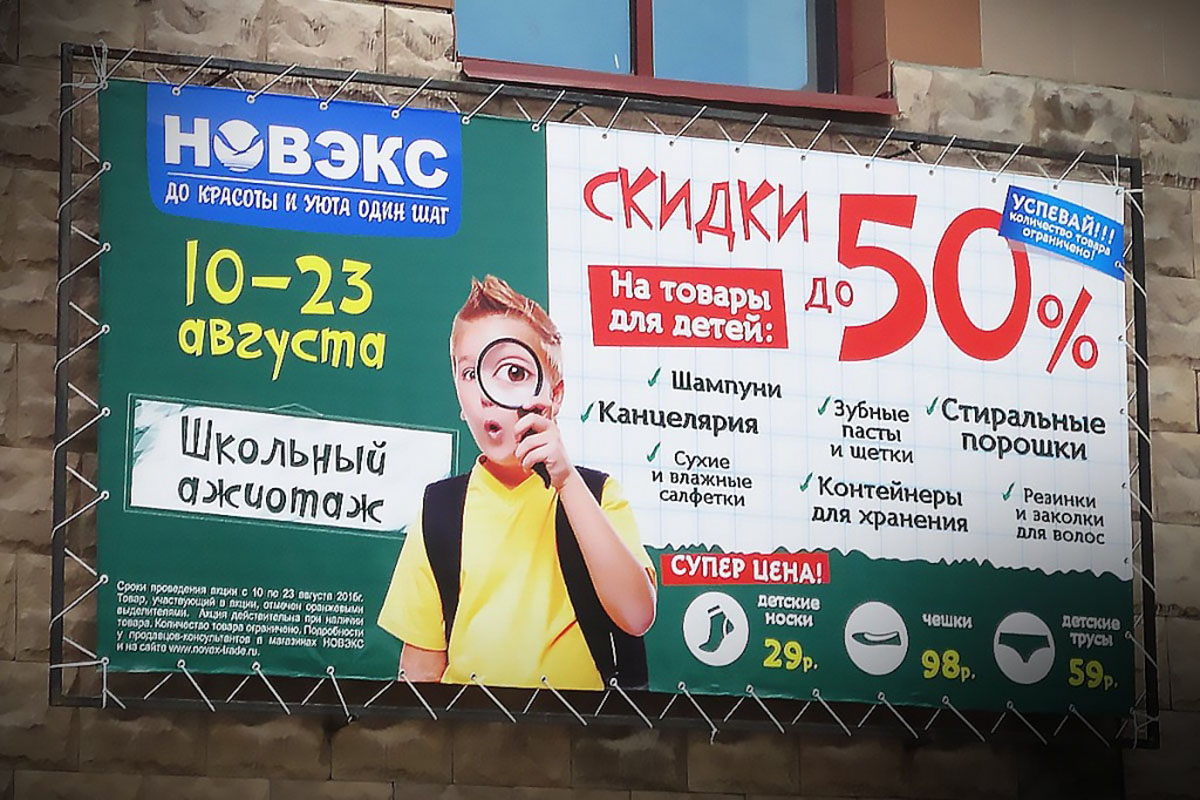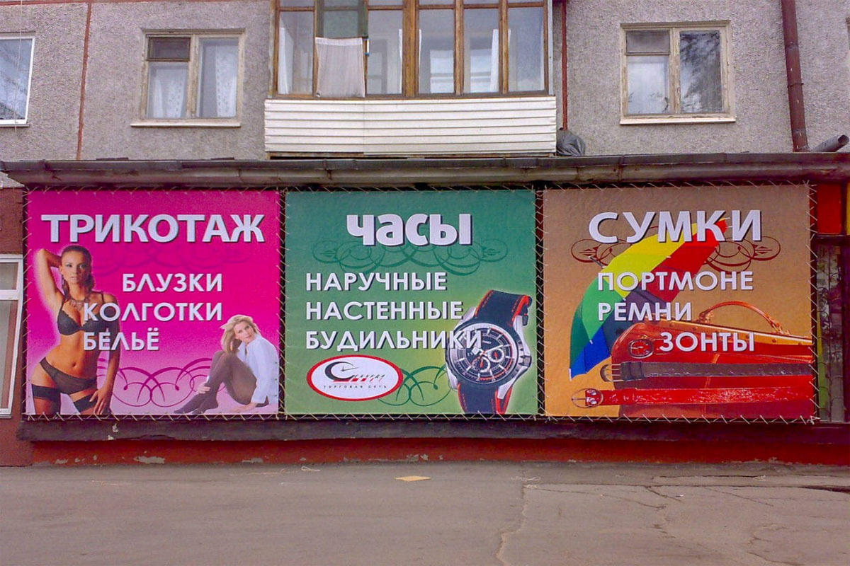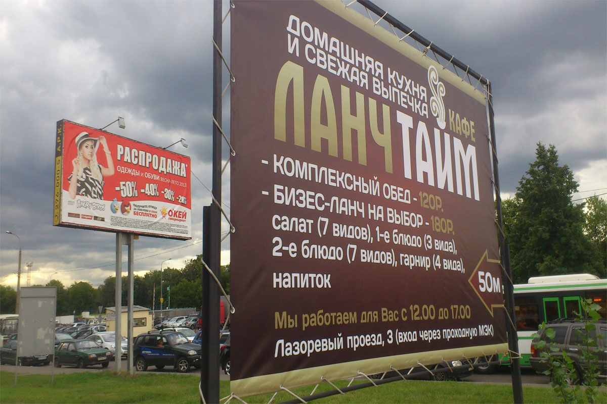 Реклама может быть напечатана как на бумаге, так и на баннерной ткани.