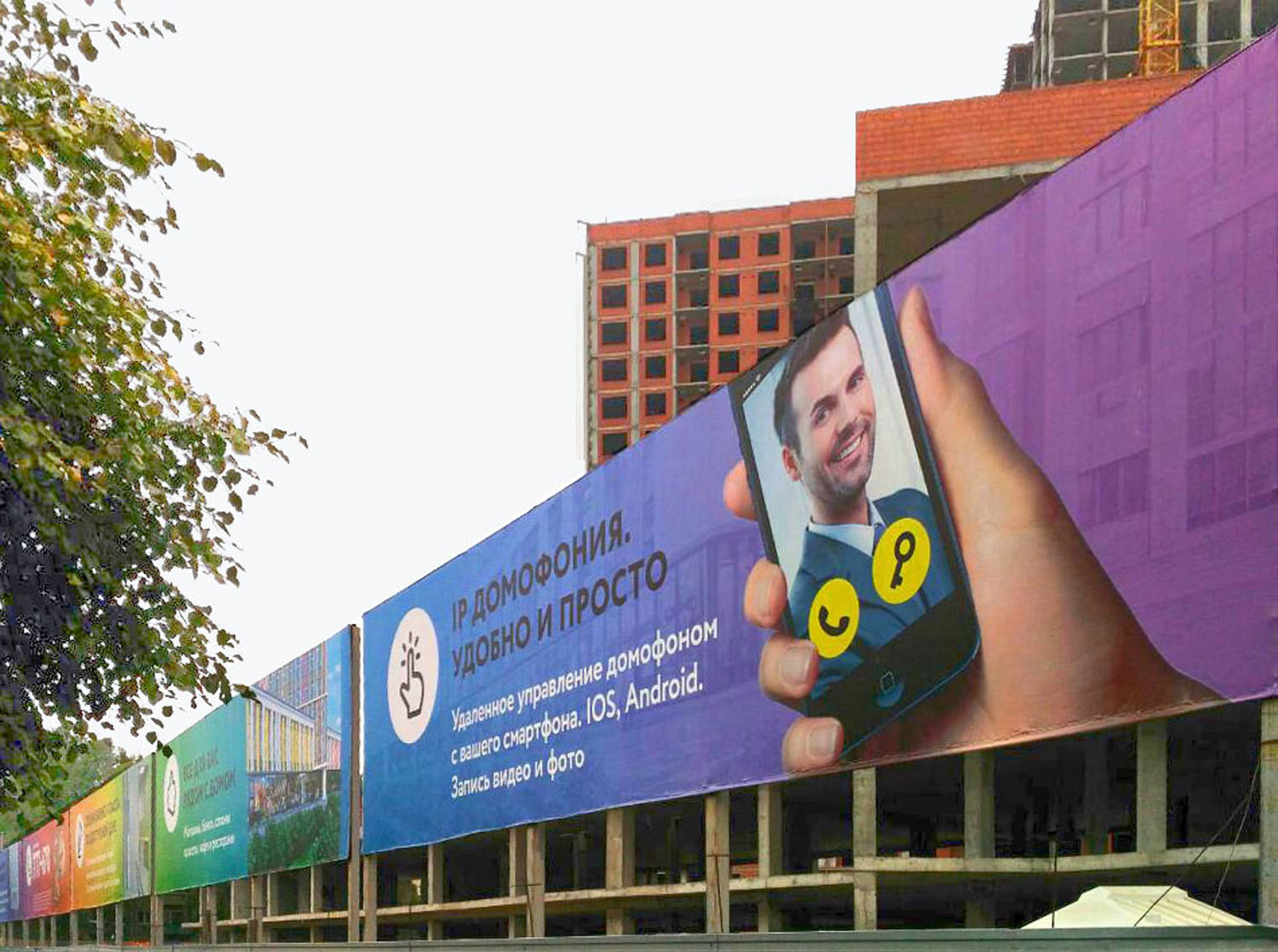 Примеры рекламы на заборах представлены на фото: