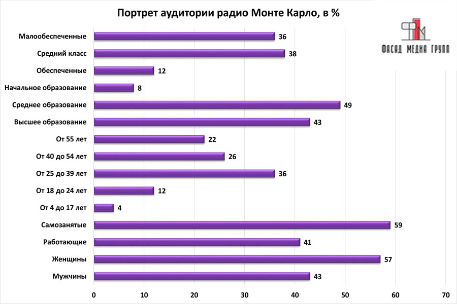 На вопрос: «Какова целевая аудитория радио «Монте Карло»? – можно указать следующее: