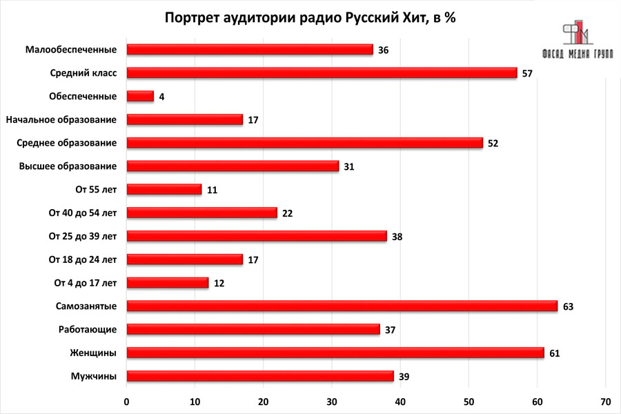 Аудитория радиостанции «Русский Хит» является разнообразной и многочисленной.