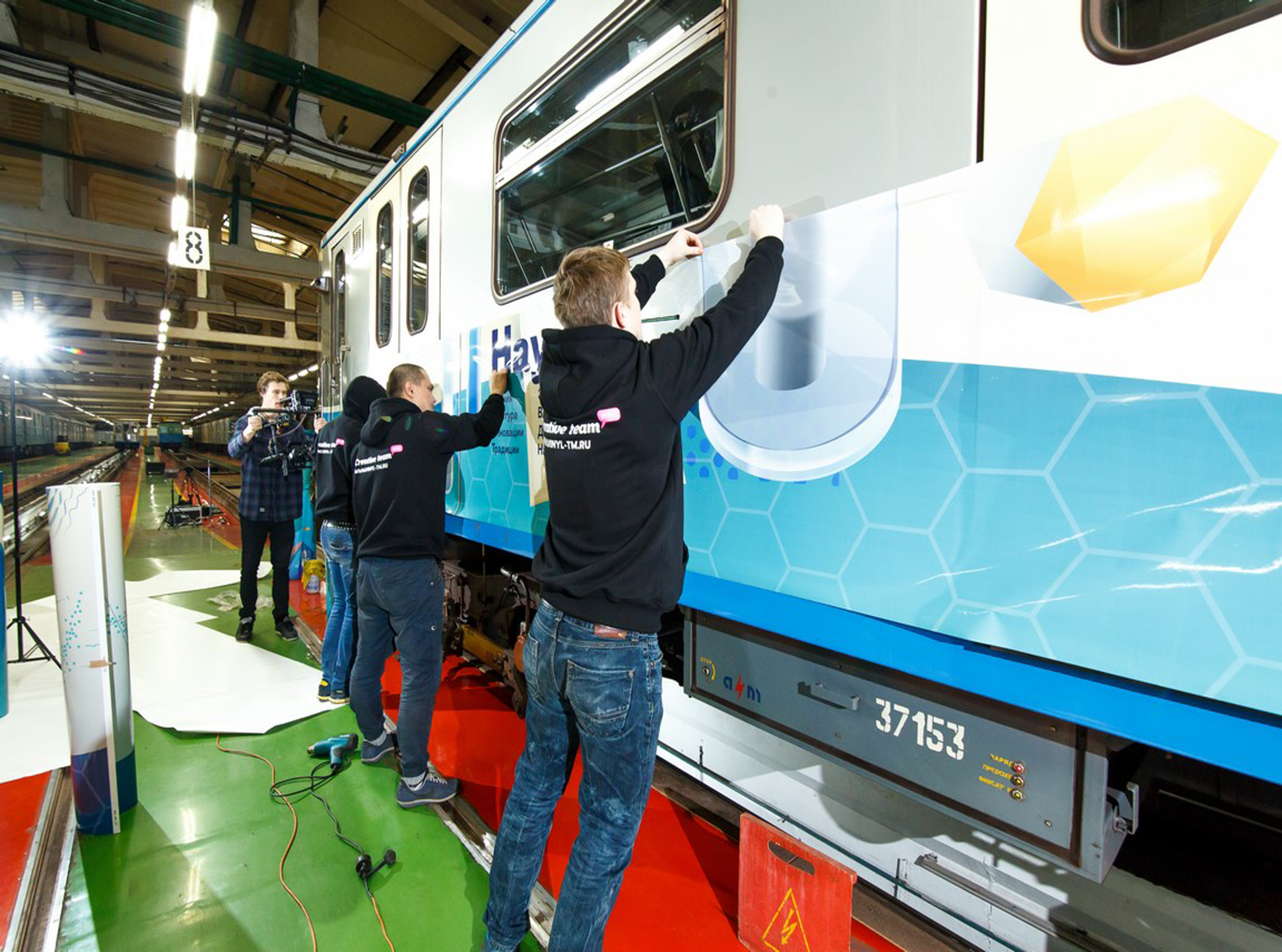 3) процесс брендирования (оклейки) вагона рекламой: