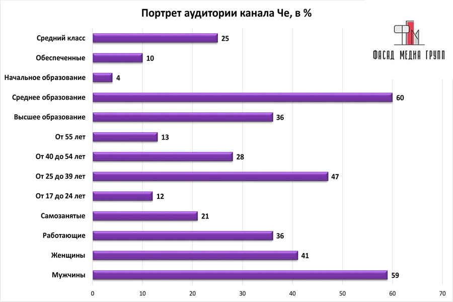 Портрет аудитории телеканала «Че» представлен на графике: