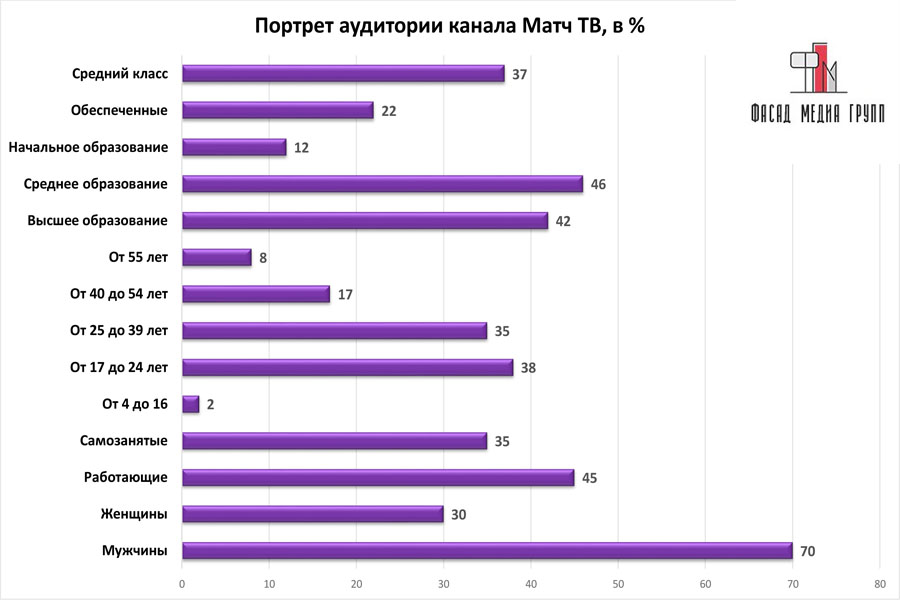 Благодаря качественному, сбалансированному контенту аудитория «Матч ТВ» многочисленна и разнообразна.