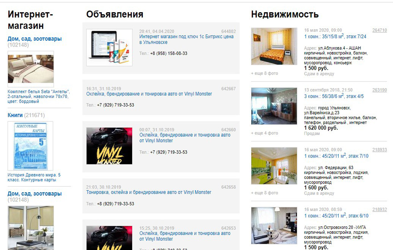 Пример текстовой рекламы в городском интернет-портале представлен на фото: