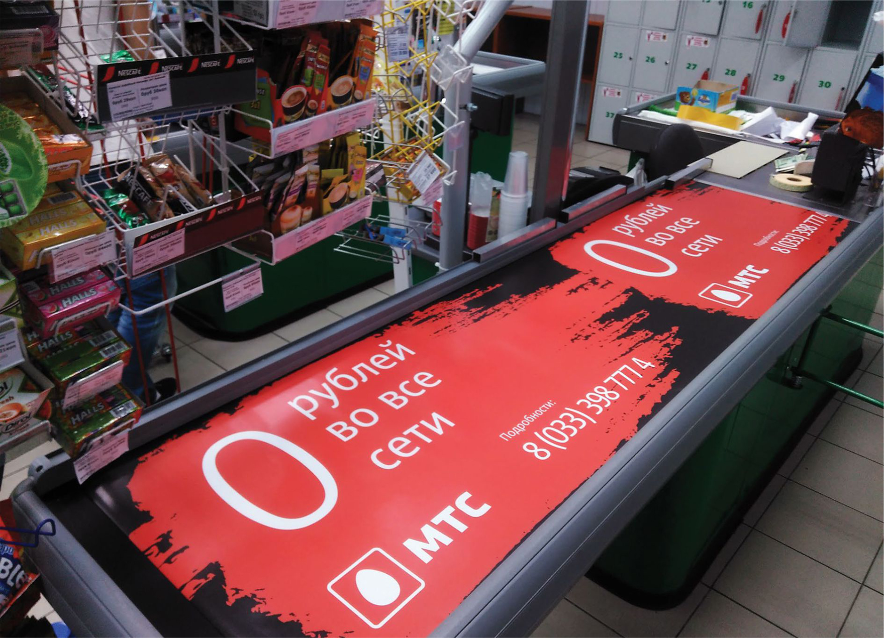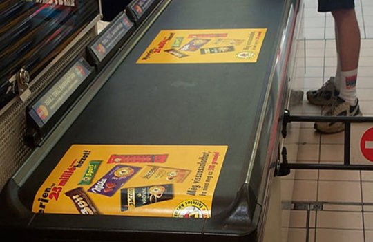 Пример рекламы на ленте в супермаркетах: